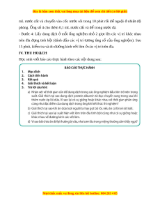 phòng. Ống số 4 cho thêm 0,1 mL nư c c ớ t â và đ t ể rong nư c đá. ớ - Bư c ớ 4: Lây dung d ch i ở m i ỗ ng ố nghi m ệ nho 2 gi t o lên các vi trí khác nhau trên đia đ ng ự tinh b t ộ (đánh d u â các vi trí tư ng ơ ng ư số c a ủ ng ố nghi m ệ ). Sau 15 phut, ki m ể tra và đo đư ng kí ơ nh v t ê lõm các v ở t i rí trên đia. IV. THU HOẠCH H c o sinh vi t ê báo cáo th c hành t ự heo các n i ộ dung sau: M i