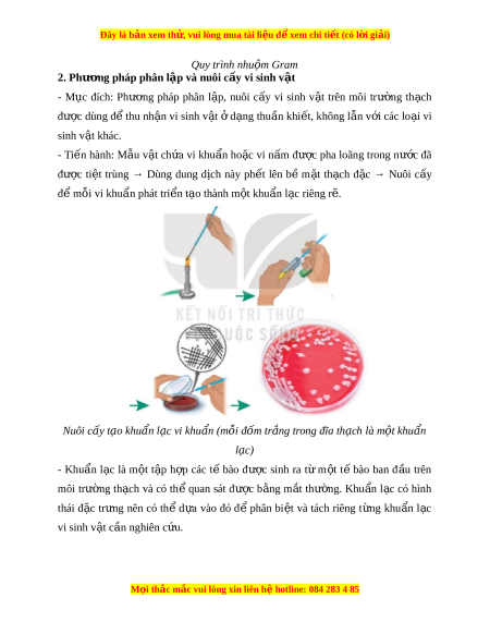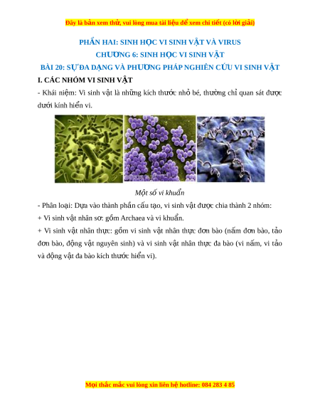 Đây là bản xem th , vu ử i lòng mua tài li u ệ đ xe ể m chi ti t (c ế ó l i ờ gi i ả ) PHẦN HAI: SINH H C Ọ VI SINH V T Ậ VÀ VIRUS CHƯ N Ơ G 6: SINH H C Ọ VI SINH V T Ậ BÀI 20: S Đ Ự A D N Ạ G VÀ PHƯ N Ơ G PHÁP NGHIÊN C U Ứ VI SINH V T Ậ