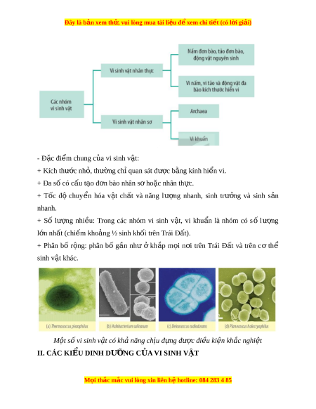 Đây là bản xem th , vu ử i lòng mua tài li u ệ đ xe ể m chi ti t (c ế ó l i ờ gi i ả ) - Đ c ă đi m ể chung c a vi u sinh v t ậ : + Kích thư c ớ nh , t ỏ hư ng ch ờ quan ỉ sat đư c ợ b ng kí ă nh hi n vi ể . + Đa sô có c u t ấ o đ a n bào ơ nhân s ho ơ c nhân t ă h c. ự + Tôc đ ộ chuy n ể hóa v t ậ ch t ấ và năng lư ng ợ nhanh, sinh trư ng ở và sinh s n ả nhanh. + Sô lư ng ợ nhi u: