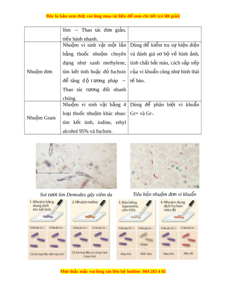 Đây là bản xem th , vu ử i lòng mua tài li u ệ đ xe ể m chi ti t (c ế ó l i ờ gi i ả ) lom → Thao tac đ n ơ gi n, ả ti n hành nhanh. ê Nhu m ộ vi sinh v t ậ m t ộ l n ầ Dùng để ki m ể tra sự hi n ê di n ê b ng ă thu c ô nhu m