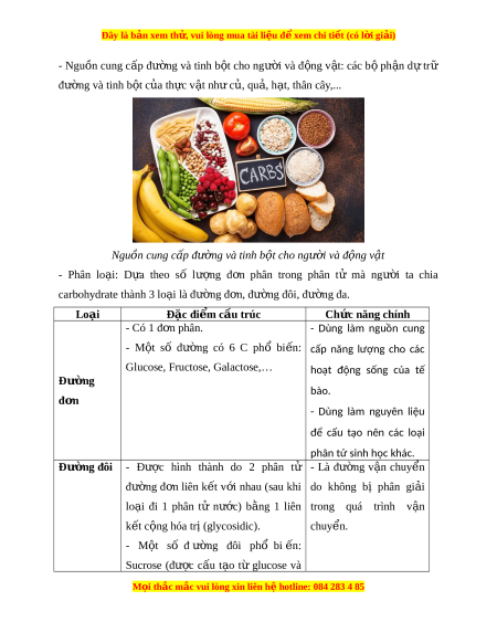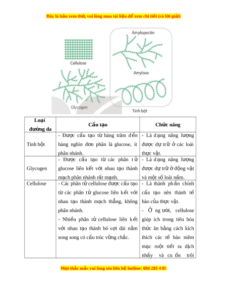Đây là bản xem th , vu ử i lòng mua tài li u ệ đ xe ể m chi ti t (c ế ó l i ờ gi i ả ) Loại Cấu tạo Chức năng đư ng đa ờ - Đư c ợ c u ấ t o ạ t ừ hàng trăm đ n ê - Là d ng ạ năng lư ng ợ Tinh b t ộ hàng nghìn đ n