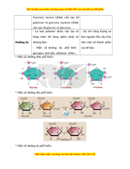 Đây là bản xem th , vu ử i lòng mua tài li u ệ đ xe ể m chi ti t (c ế ó l i ờ gi i ả ) fructose), lactose (đư c ợ c u ấ t o ạ từ