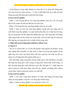 b) Quy trinh thi nghi m ê - Bư c ơ 1: Cho hai gi t o d u â ăn vao trong ng ô nghi m ệ cùng v i ơ 5 mL c n ô tuy t ệ đôi rôi l c ắ m nh cho đ a n khi ế d u hòa t â an hoan toan. - Bư c ơ 2: Rót dung d ch nay s ị ang ng ngh ô i m ệ ch a ứ vai mL nư c. ơ - Bư c ơ 3: Quan sat mau s c ắ trong ng ô nghi m ệ : huy n ề phù mau tr ng ắ s a ư se xuất hi n ệ trong ng ô nghi m ệ . Cac gi t o huy n ề phù ph n ả x a va h p ấ th ụ anh sang, lam cho dung d ch ị tr ơ nên tr ng ắ nh ư nh ng ư đam mây. N u ế dung d ch ị c n ô không ch a ứ triglyceride thi c n ô s e hòa tan trong nư c ơ va khi đó anh sang s e xuyên qua hôn h p l ơ am cho dung d ch c ị ôn va nư c ơ tr nên t ơ rong su t ô . 3. Nhận bi t ế protein b ng p ằ hép th B ử iuret (Biuret test) a) Nguyên li - T t ấ cả cac protein đ u ề có cac liên k t ế peptide ch a
