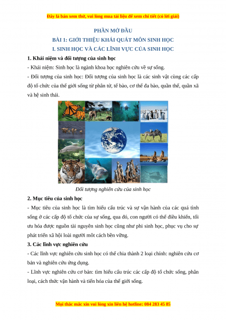 BÀI 1: GIỚI THIỆU KHÁI QUÁT MÔN SINH HỌC