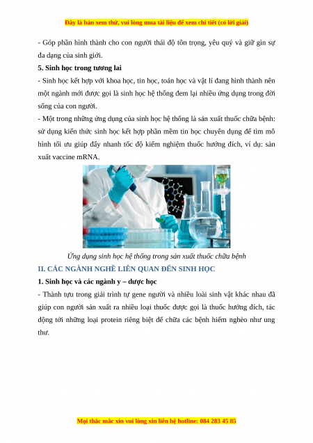 II. CÁC NGÀNH NGHỀ LIÊN QUAN ĐẾN SINH HỌC