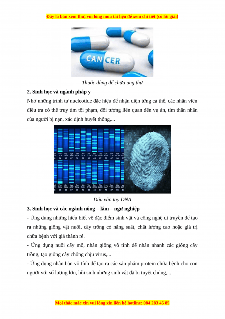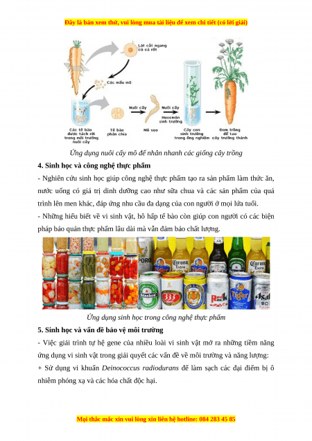 thành tựu sinh học vào thực tiễn đời sống.
