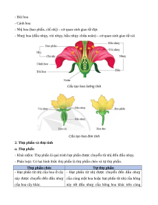 - Chỉ có nhị hoặc nhuỵ trên m t ộ hoa. - Ví d : ụ hoa c i ả , hoa bư i ở , hoa cam,... - Ví d : ụ hoa mư p, hoa ớ bí, hoa ngô,… 1. Cấu tạo hoa Hoa g m ồ các b ph ộ n ậ chính: - Đài hoa - Cánh hoa - Nh hoa ( ị bao ph n, ch ấ nh ỉ ) ị – c quan s ơ inh giao t đ ử c ự - Nhu hoa ( ỵ đ u nh ầ y ụ , vòi nh y ụ , b u nh ầ y ụ ch a noãn) ứ – c quan s ơ inh giao t cái ử