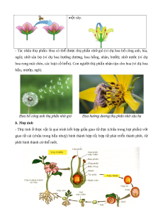 ngô); nhờ sâu bọ (ví dụ hoa hư ng ớ dư ng, ơ hoa h ng, ồ nhãn, bư i ở ); nhờ nư c ớ (ví dụ hoa rong mái chèo, các lo i ạ c bi ỏ n) ể . Con ngư i ờ th ụ ph n ấ nhân t o cho ạ hoa (ví d hoa ụ bầu, mư p, ngô) ớ . b. Th t ụ inh - Thụ tinh ở th c ự v t ậ là quá trình k t ế h p ợ gi a ữ giao t ử đ c ự (ch a ứ trong h t ạ ph n) ấ v i ớ giao tử cái (ch a ứ trong b u ầ nhu ) ỵ hình thành h p ợ t , ử h p ợ t ử phát tri n ể thành phôi, từ phôi hình thành cơ th m ể i ớ .