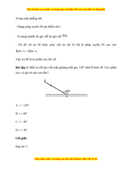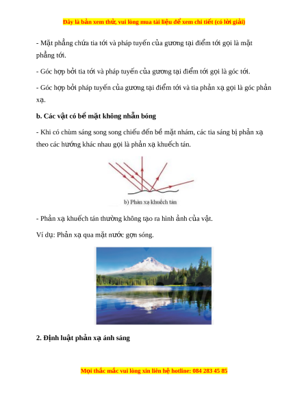 Đây là bản xem th , vu ử i lòng mua tài li u ệ đ xe ể m chi ti t (c ế ó l i ờ gi i ả ) - M t ặ ph ng ch ẳ a ứ tia t i ớ và pháp tuy n c ế a ủ gư ng t ơ i ạ đi m ể t i ớ g i ọ là m t ặ ph ng ẳ t i ớ . - Góc h p b ợ i ở tia t i ớ và pháp tuy n c ế a ủ gư ng t ơ i ạ đi m ể t i ớ g i ọ là góc t i ớ . - Góc h p b ợ i ở pháp tuy n c ế a g ủ ư ng ơ t i ạ đi m ể t i ớ và tia ph n ả x g ạ i ọ là góc ph n ả x . ạ b. Các vật có b m