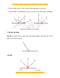 ạ IR1 và IR2 tuân theo định lu t ậ ph n ả x ánh s ạ áng. + Tìm giao đi m ể S’ c a ủ đư ng kéo dài ờ các tia I1R1 và I2R2 n m ằ phí ở a sau gư ng. ơ 5. Bài tập v n d ậ ng ụ Bài tập 1: Chi u ế m t ộ tia sáng SI lên m t ộ gư ng ơ ph ng ẳ ( như hình v ) ẽ . Vẽ tia ph n ả x I ạ R c a ủ tia sáng SI. L i ờ giải: M i