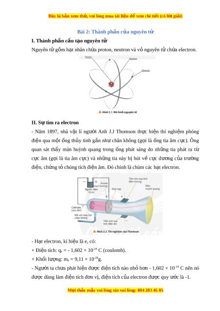Đây là bản xem th , vu ử i lòng mua tài li u ệ đ xe ể m chi ti t ế (có l i ờ gi i ả ) Bài 2: Thành ph n c ầ a nguyên t ủ ử I. Thành ph n c ầ u t ấ o nguyên t ạ ử Nguyên t g ử ồm h t ạ nhân ch a