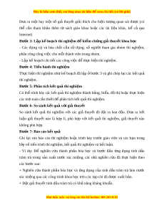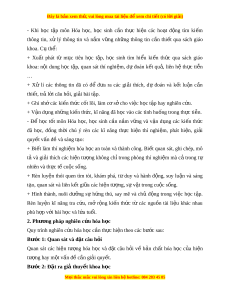 ả thêm từ sách giáo khoa ho c ặ các tài li u ệ khác, kể cả qua Internet) Bước 3: Lập k h ế oạch thí nghi m ệ đ k ể i m ể ch ng gi ứ t ả huy t ế khoa h c ọ - Các d ng ụ cụ và hóa ch t ấ c n ầ sử d ng; ụ số ngư i ờ tham gia nhóm thí nghi m ệ ; phân công công vi c cho m ệ ỗi thành viên trong nhóm. - L p k ậ ho ế ch ạ chi ti t ế các công vi c đ ệ t ể h c ự hi n t ệ hí nghi m ệ . Bước 4: Ti n hà ế nh thí nghi m ệ Th c ự hi n ệ thí nghi m ệ nh ư k ế ho ch ạ đã l p ậ b ở ư c ớ 3 và ghi chép l i ạ các k t ế quả thí nghi m ệ .