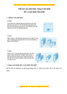 Lý thuyết Thể tích của một hình Xăng-ti-mét khối, Đề-xi-mét khối, Mét khối Toán 5