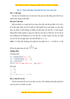 sau bao lâu hai tàu g p nhau, ặ khi bi t ế dữ li u d, v1, v2. ệ G i ợ ý: Vì m i ỗ gi , ờ kho ng ả cách gi a ữ hai tàu gi m ả đi (v1 + v2) h i ả lí, vì v y ậ d đ hai ể tàu g p ặ nhau s c ẽ n ầ v1 v2 gi . ờ Hư ng ớ d n: ẫ Chư ng ơ trình: K t ế qu : ả Bài 2. D t ự r vacxi ữ n V i