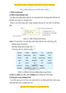 Bài 2. Bi n, phép gán và bi ế u t ể h c s ứ h ố c ọ 1. Bi n và phép gán ế a) Bi n ế trong chư ng ơ trình - Dù l p ậ trình b ng ằ ngôn ngữ nào thì c n ầ ph i ả bi t ế sử d ng ụ bi n ế để l u ư trữ d l ữ i u c ệ n t ầ hi t ế cho chư ng t ơ rình. - Bi n ế là tên m t ộ vùng nh , ớ trong chư ng ơ trình giá trị c a ủ bi n ế có thể thay đổi. Hình 2.1: M t ộ chư ng t ơ rình Python