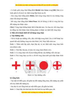Chú ý: Vùng ch n ọ không thu c b ộ t ấ kì l p ớ nh nào. ả Các thao tác v i ớ vùng ch n ọ tác đ ng vào ộ nh ả đư c ợ ch n nh ọ ng ph ư m ạ v đ ị ư c ợ xác đ nh b ị i ở vùng ch n. ọ 4. M t ộ số kĩ thu t ậ thi t ế k s ế d ử ng vù ụ ng ch n ọ a. Tạo đư ng vi ờ n ề - V i ớ kĩ thu t ậ t o ạ đư ng ờ vi n, ề d u ấ ch ữ th p ậ trong Hình 2.6a có th ể đư c ợ bao quanh b i ở m t ộ đư ng ờ vòng tròn nh H ư ình 2.4d. Th c ự hi n nh ệ ư sau: Bư c ớ 1. Thêm m t ộ l p ớ m i ớ , ch n ọ l p ớ này và xác đ nh ị m t ộ vùng ch n ọ hình tròn (Hình 2.4b) Bư c ớ 2. Trên l p v ớ a t ừ o, ạ tô màu cho vùng ch n ( ọ Hình 2.4c). Bư c ớ 3. Co vùng ch n ọ v i ớ s pi ố xel b ng đ ằ ộ dày c a đ ủ ư ng ờ vi n c ề n t ầ o. ạ Bư c ớ 4. Xóa vùng ch n s ọ au khi co r i ồ bỏ vùng ch n ( ọ k t ế qu nh ả n ậ đư c H ợ ình 2.4). Hình 2.4: T o đ ạ ư ng ờ vi n ề b) L ng hì ồ nh - T i ạ m t ộ số đi m ể giao c t ắ gi a ữ hai đ i ố tư ng ợ l ng ồ nhau, đ i ố tư ng ợ này ph i ả trên hay dư i ớ đ i ố tư ng ki ợ a.