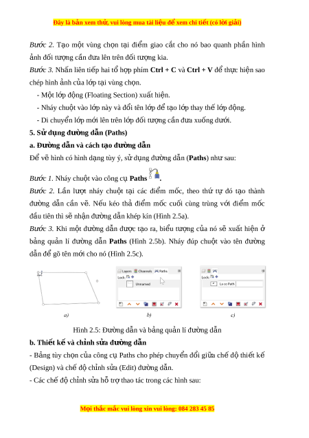 ộ vào công cụ Paths . Bư c ớ 2. Lần lư t ợ nháy chu t ộ t i ạ các đi m ể m c, ố theo thứ tự đó t o ạ thành đư ng ờ d n ẫ c n ầ v . ẽ N u ế kéo thả đi m ể m c ố cu i ố cùng trùng v i ớ đi m ể m c ố đầu tiên thì s nh ẽ n ậ đư ng d ờ n khép kí ẫ n (Hình 2.5a). Bư c ớ 3. Khi m t ộ đư ng ờ d n ẫ đư c ợ t o ạ ra, bi u ể tư ng ợ c a ủ nó sẽ xu t ấ hi n ệ ở b ng ả qu n ả lí đư ng ờ d n