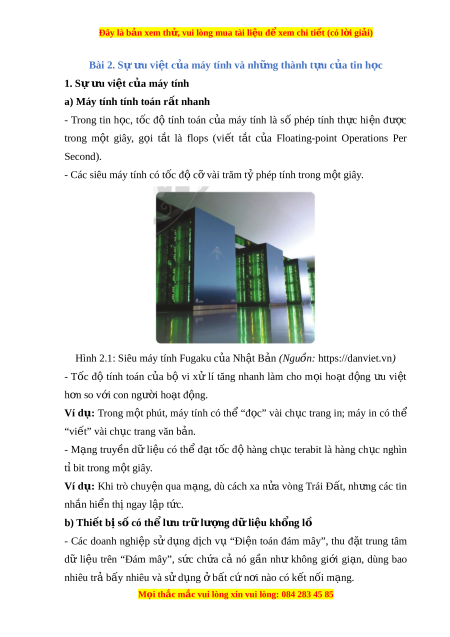 Đây là bản xem th , vu ử i lòng mua tài li u ệ đ xe ể m chi ti t ế (có l i ờ gi i ả ) Bài 2. S ự u vi ư t ệ c a m ủ áy tính và nh ng t ữ hành t u c ự a t ủ in h c ọ 1. Sự ưu vi t ệ c a m ủ áy tính