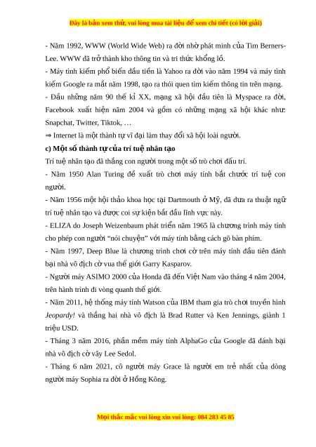 ữ năm 90 thế kỉ XX, m ng ạ xã h i ộ đ u ầ tiên là Myspace ra đ i ờ , Facebook xu t ấ hi n ệ năm 2004 và g m ồ có nh ng ữ m ng ạ xã h i ộ khác nh : ư Snapchat, Twitter, Tiktok, … ⇒ Internet là m t ộ thành t vĩ ự đ i ạ làm thay đ i ổ xã h i ộ loài ngư i ờ . c) M t ộ số thành t c ự a t ủ rí tu nhân t ệ o ạ Trí tu nhân t ệ o đã t ạ h ng ắ con ngư i ờ trong m t ộ s t ố rò ch i ơ đ u t ấ rí.