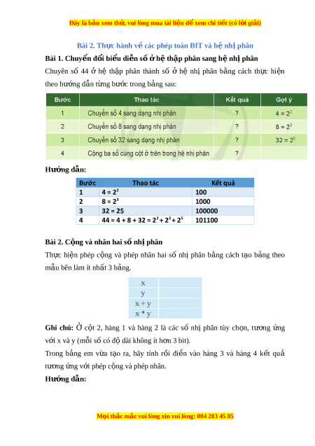 Đây là bản xem th , vu ử i lòng mua tài li u ệ đ xe ể m chi ti t ế (có l i ờ gi i ả ) Bài 2. Th c hành v ự các phép t ề oán BIT và h nh ệ p ị hân Bài 1. Chuy n đ ể i ổ bi u d ể i n s ễ ố h ở t ệ h p p ậ hân sang h nh ệ phân ị Chuyên số 44 ở hệ th p
