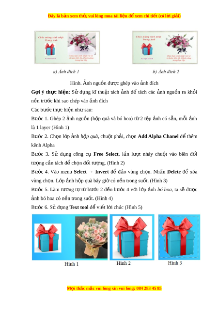 ậ như Hình 1b, trong đó các nh ả nguồn (h p ộ quà và bó hoa) đư c ợ tách kh i ỏ n n. ề Có th ể thay đ i ổ n i ộ dung các l i ờ chúc m ng và t ừ hay các nh ngu ả n b ồ ng ằ nh ả khác. M i ọ thắc m c