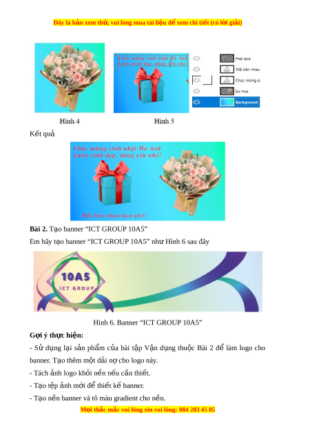 Đây là bản xem th , vu ử i lòng mua tài li u ệ đ xe ể m chi ti t (c ế ó l i ờ gi i ả ) K t ế quả Bài 2. T o banner ạ “ICT GROUP 10A5” Em hãy t o banner ạ “ICT GROUP 10A5” nh H ư ình 6 sau đây