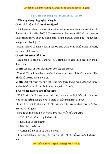 Đây là bản xem th , vu ử i lòng mua tài li u ệ đ xe ể m chi ti t ế (có l i ờ gi i ả ) Bài 4. Tin h c t ọ rong phát tri n ki ể nh t - ế xã h i ộ