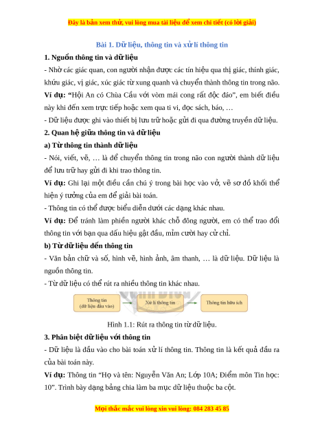 Đây là bản xem th , vu ử i lòng mua tài li u ệ đ xe ể m chi ti t ế (có l i ờ gi i ả ) Bài 1. D l ữ i u, t ệ hông tin và x l ử í thông tin 1. Ngu n t ồ hông tin và d l ữ i u ệ - Nh