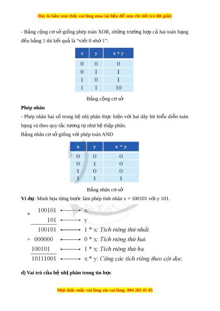 Đây là bản xem th , vu ử i lòng mua tài li u ệ đ xe ể m chi ti t (c ế ó l i ờ gi i ả ) - B ng ả c ng ộ cơ sở gi ng ố phép toán XOR, nh ng ữ trư ng ờ h p ợ c ả hai toán h ng ạ đ u b ề ng ằ 1 thì k t ế qu l ả à “vi t ế 0 nh 1”. ớ B ng c ả ng ộ c s ơ ở Phép nhân