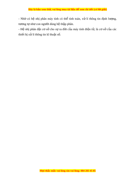 - Nh có h nh phân máy tính có th tính toán, x lí thông tin đ nh l ng,ờ ệ ị ể ử ị ượ