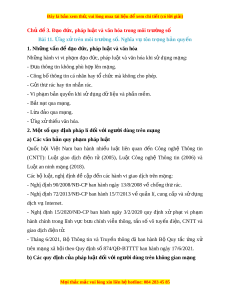 ậ và văn hóa trong môi trư ng s ờ ố Bài 11. ng x Ứ t ử rên môi trư ng ờ s . N ố ghĩa v t ụ ôn tr ng b ọ n quy ả n ề 1. Những v n đ ấ đ ề o đ ạ c, ứ pháp lu t ậ và văn hóa Nh ng ữ hành vi vi ph m ạ đ o đ ạ c, ứ pháp lu t ậ và văn hóa khi s d ử ng ụ m ng: ạ - Đ a t ư hông tin không phù h p l ợ ên m ng. ạ