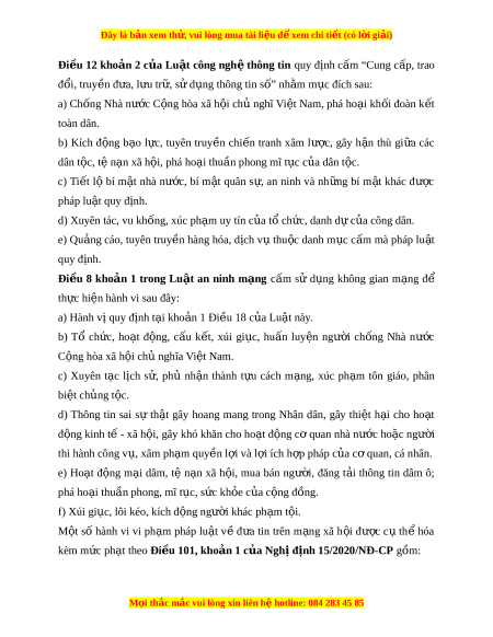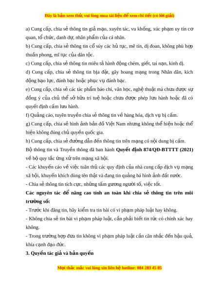Đây là bản xem th , vu ử i lòng mua tài li u ệ đ xe ể m chi ti t (c ế ó l i ờ gi i ả ) a) Cung c p, ấ chia s ẻ thông tin gi ả m o, ạ xuyên tác, vu kh ng, ố xúc ph m ạ uy tín cơ quan, tổ ch c, ứ danh d , nhân ph ự ẩm c a cá ủ nhân. b) Cung c p, ấ chia sẻ thông tin c ổ súy các h ủ t c,