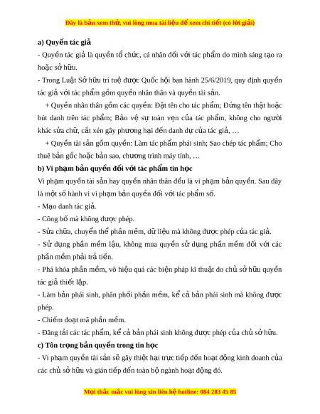 Đây là bản xem th , vu ử i lòng mua tài li u ệ đ xe ể m chi ti t (c ế ó l i ờ gi i ả ) a) Quy n t ề ác giả - Quy n ề tác giả là quy n ề tổ ch c, ứ cá nhân đ i ố v i ớ tác ph m ẩ do mình sáng t o ạ ra ho c ặ sở h u. ữ - Trong Lu t ậ Sở h u ữ trí tuệ đư c ợ Qu c ố h i