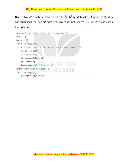 vào danh sách ten, các h đ m đ a vào danh sách hodem. Sau đó in ra danh sáchọ ệ ư