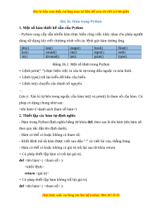 Bài 26. Hàm trong Python 1. M t ộ s hàm ố thi t ế k s ế n c ẵ a P ủ ython - Python cung c p ấ s n ẵ nhi u ề hàm th c ự hi n ệ công vi c
