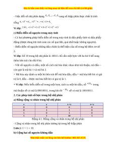 a) Bảng c ng và nhân t ộ rong h n ệ h p ị hân x y x + y x × y 0 0 0 0 0 1 1 0 1 0 1 0 1 1 10 1 B ng ả 4.1: B ng ả c ng và nhân t ộ rong h nh ệ phân ị - C ng ộ và nhân trong h nh ệ phân t ị ư ng t ơ ự trong h t ệ h p phân ậ Lưu ý: 1 + 1 = 10. b) C ng hai ộ s ng ố uyên không d u ấ M i