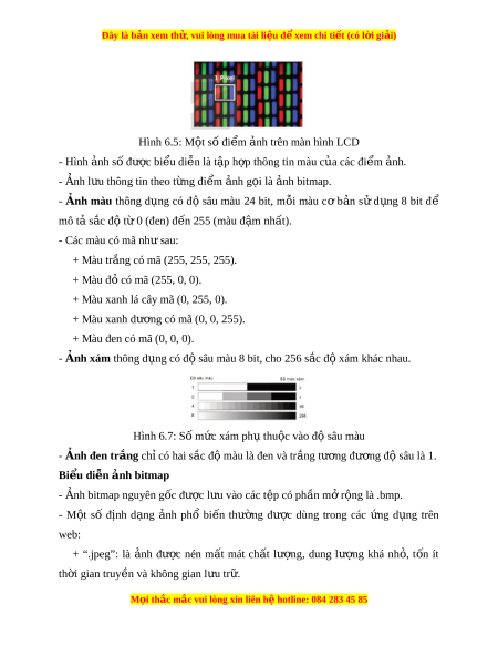 Đây là bản xem th , vu ử i lòng mua tài li u ệ đ xe ể m chi ti t (c ế ó l i ờ gi i ả ) Hình 6.5: M t ộ số đi m ể nh ả trên màn hình LCD - Hình nh s ả ố đư c bi ợ u di ể n l ễ à t p ậ h p t ợ hông tin màu c a các ủ đi m ể nh. ả - nh l Ả u t ư hông tin theo t ng đi ừ m ể nh g ả i ọ là nh bi ả tmap. - nh Ả màu thông d ng