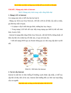 ạ WAN qua các Router thông qua các nhà cung c p ấ d ch ị v ụ k t ế nối. Hình 8.1: Mô hình c a I ủ nternet 2. Vai trò c a I ủ nternet Internet là m t ộ kho tri th c ứ kh ng ổ lồ thư ng ờ xuyên đư c ợ c p ậ nh t ậ , có thể truy c p ậ bất cứ đâu, b t
