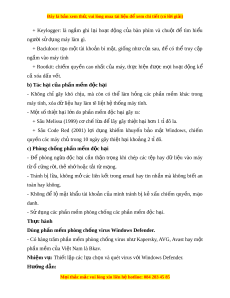 Đây là bản xem th , vu ử i lòng mua tài li u ệ đ xe ể m chi ti t (c ế ó l i ờ gi i ả ) + Keylogger: là ng m ầ ghi l i ạ ho t ạ đ ng ộ c a ủ bàn phím và chu t ộ để tìm hi u ể ngư i ờ s d ử ng m ụ áy làm gì. + Backdoor: t o ạ m t ộ tài kho n ả bí m t ậ , gi ng ố nh ư c a ử sau, đ ể có th ể truy c p ậ ngầm vào máy tính + Rootkit: chi m ế quy n ề cao nh t ấ c a ủ máy, th c ự hi n ệ đư c ợ m i ọ ho t ạ đ ng ộ kể cả xóa dấu v t ế . b) Tác h i ạ c a ph ủ n m ầ m ề đ c h ộ i ạ - Không chỉ gây khó ch u,