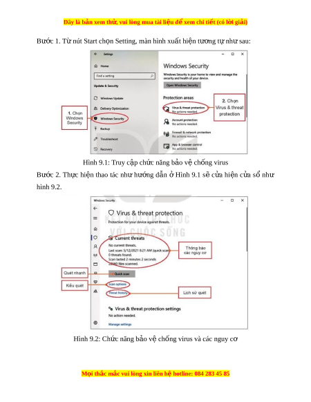 Đây là bản xem th , vu ử i lòng mua tài li u ệ đ xe ể m chi ti t (c ế ó l i ờ gi i ả ) Bư c 1. ớ T nút ừ Start ch n Set ọ ting, màn hình xu t ấ hi n t ệ ư ng ơ t nh ự s ư au: Hình 9.1: Truy c p ậ ch c năng b ứ o ả v ch ệ ng vi ố rus Bư c ớ 2. Th c ự hi n ệ thao tác nh ư hư ng ớ d n ẫ ở Hình 9.1 s ẽ c a ử hi n ệ c a ử s ổ như hình 9.2. Hình 9.2: Ch c ứ năng b o ả v ch ệ ng vi ố rus và các nguy cơ M i