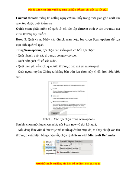 Đây là bản xem th , vu ử i lòng mua tài li u ệ đ xe ể m chi ti t (c ế ó l i ờ gi i ả ) Current threats: th ng ố kê nh ng ữ nguy cơ tìm th y ấ trong th i ờ gian g n ầ nh t ấ khi quét t p đ ệ ư c ợ quét ki m ể tra. Quick scan: ph n ầ m m ề sẽ quét t t ấ cả các t p ệ chư ng ơ trình ở các thư m c ụ mà virus thư ng ờ lây nhi m ễ . Bư c