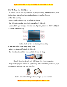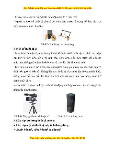 - Micro, loa, camera cũng được tích h p ngay t ợ rên thân máy - Ngoài ra, m t ộ số thi t ế bị còn có bút c m ả ng ứ đư c ợ sử d ng ụ để thao tác tr c ự ti p t ế rên màn hình c m ả ng. ứ Hình 5. S d ử ng bút ụ c m ả ng ứ c. M t ộ số thi t ế b s ị ố - Máy nh ả kĩ thu t ậ s , ố máy nh ả ghi hình kĩ thu t ậ s l ố à thi t ế b cho ị phép thu th p, ậ l u ư trữ và th c ự hi n ệ xử lí t p ệ nh, ả t p ệ video đ n ơ gi n. ả Khi đư c ợ k t ế n i ố v i ớ máy tính, chúng tr t ở hành thi t ế b vào và t ị rao đ i ổ d l ữ i u m ệ áy tính. - Loa thông minh có th ể tư ng t ơ ác v i ớ ngư i ờ dùng qua gi ng nói ọ nh ư h i ỏ , đáp về th i ờ ti t ế , giờ và k t ế n i ố không dây các thi t