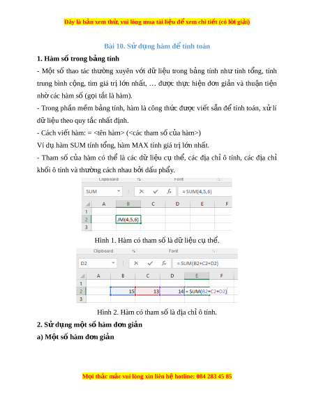 Đây là bản xem th , vu ử i lòng mua tài li u ệ đ xe ể m chi ti t (c ế ó l i ờ gi i ả ) Bài 10. S d ử ng h ụ àm đ t ể ính toán