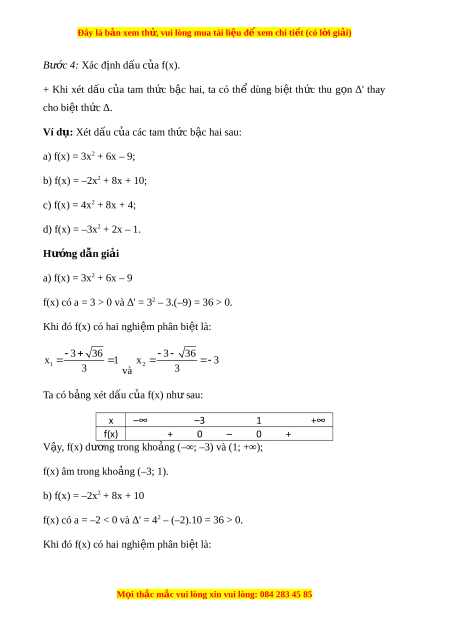 Đây là bản xem th , vu ử i lòng mua tài li u ệ đ xe ể m chi ti t (c ế ó l i ờ gi i ả ) Do đó f(x) âm t i ạ x = 3. c) Bi u ể th c