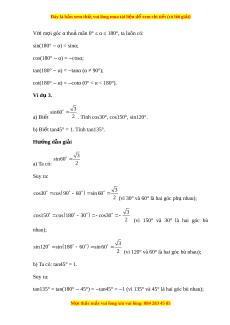 ế tan45° = 1. Tính tan135°. Hư ng ớ d n gi ẫ i ả 3 sin60 a) Ta có: 2 Suy ra: 3 o c s30 c os 90 60 s