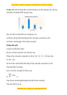 Đây là bản xem th , vu ử i lòng mua tài li u ệ đ xe ể m chi ti t (c ế ó l i ờ gi i ả ) Ví d : ụ Bi u ể đồ c t ộ dư i ớ dây cho bi t ế thông tin về k t ế quả h c ọ l c ự c a ủ h c ọ sinh khối 10 trư ng ờ THPT Quang Trung. Hãy cho bi t ế các phát bi u s ể au là đúng hay sai? a) Số h c s ọ inh khá l n h ớ n t ơ ổng số h c s ọ inh gi i ỏ , trung bình và y u. ế b) Số h c ọ sinh khá g p 5 l ấ n s ầ ố h c s ọ inh gi i ỏ . Hư ng d ớ ẫn gi i ả a) Quan sát bi u đ ể ồ ta th y: ấ Số h c s ọ inh khá c a kh ủ ối 10 là 140 h c s ọ inh. T ng s ổ ố h c s ọ inh gi i ỏ , trung bình và y u l