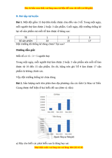 Đây là bản xem th , vu ử i lòng mua tài li u ệ đ xe ể m chi ti t ế (có l i ờ gi i ả ) B. Bài tập t l ự uy n ệ Bài 1. M t ộ đ i ộ gồm 15 th đi ợ êu khắc đư c ợ chia đ u vào 3 t ề . ổ Trong m t ộ ngày, mỗi ngư i ờ thợ làm đư c ợ 2 ho c ặ 3 s n ả ph m ẩ . Cu i ố ngày, đ i ộ trư ng ở th ng ố kê l i ạ số s n ph ả