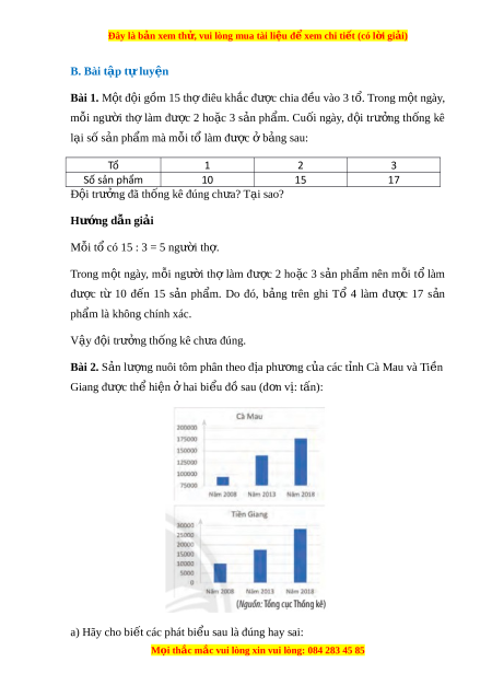 ả trên ghi Tổ 4 làm đư c ợ 17 s n ả ph m ẩ là không chính xác. V y đ ậ i ộ trư ng t ở h ng kê ch ố a ư đúng. Bài 2. S n ả lư ng nuôi ợ tôm phân theo đ a ph ị ư ng c ơ a ủ các t nh C ỉ à Mau và Ti n ề Giang đư c ợ thể hi n ệ ở hai bi u đ ể s ồ au (đ n v ơ : ị t n) ấ : a) Hãy cho bi t ế các phát bi u ể sau là đúng hay sai: M i