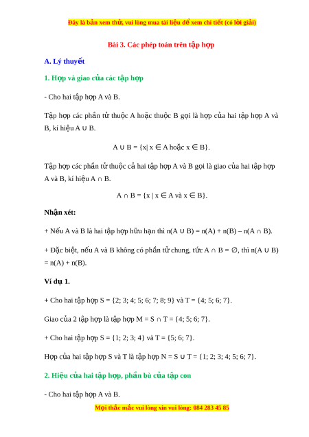 Đây là bản xem th , vu ử i lòng mua tài li u ệ đ xe ể m chi ti t (c ế ó l i ờ gi i ả ) T p ậ h p ợ các ph n ầ t ử thu c ộ A nh ng ư không thu c ộ B g i ọ là hi u ệ c a ủ A và B, kí hiệu A\B.