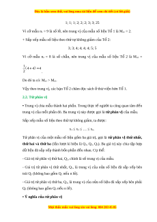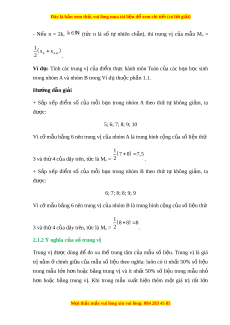 ạ trong nhóm B theo thứ tự không gi m ả , ta đư c: ợ 6; 7; 8; 8; 9; 9 Vì c m ỡ ẫu b ng 6 nên ằ trung v c ị a nhóm ủ B là trung bình c ng ộ c a s ủ l ố i u t ệ h ứ 1 88 8 3 và th 4 c ứ a ủ dãy trên, t c ứ là M 2 e = . 2.1.2 Ý nghĩa c a s ủ t ố rung vị Trung vị đư c